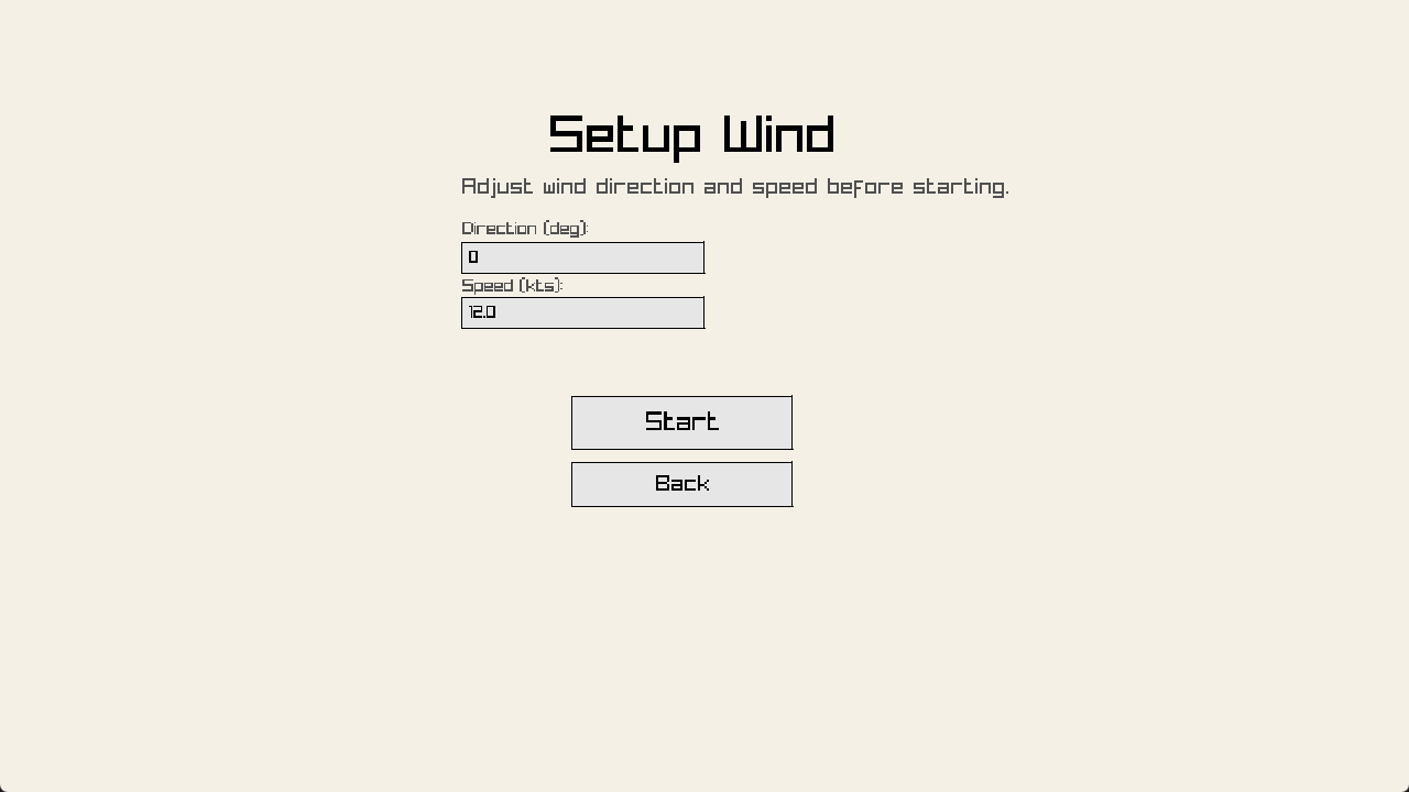 Configure your environment before you hit the water. The setup menu allows you to define exact wind speeds and directions to test your skills in everything from a light breeze to a heavy gale.